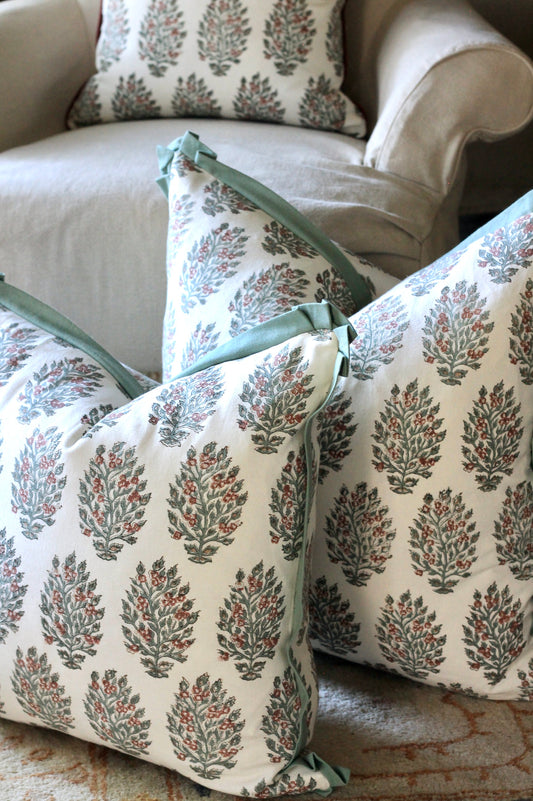 Garland in Sage Pillow Covers with Spruce Piping | 3 sizes