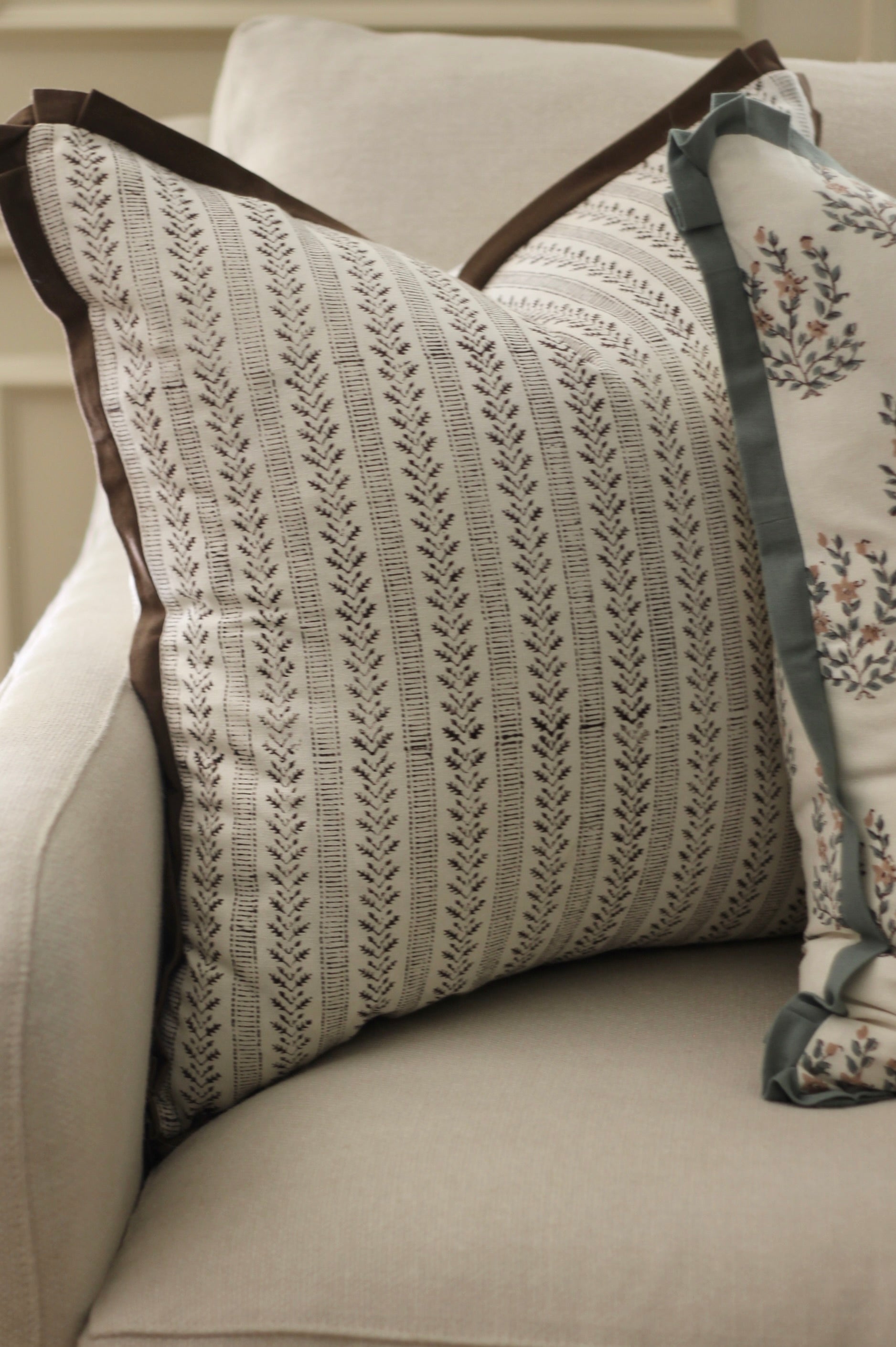 Oak Leaf Ticking Stripe Pillow Covers | Walnut Flange