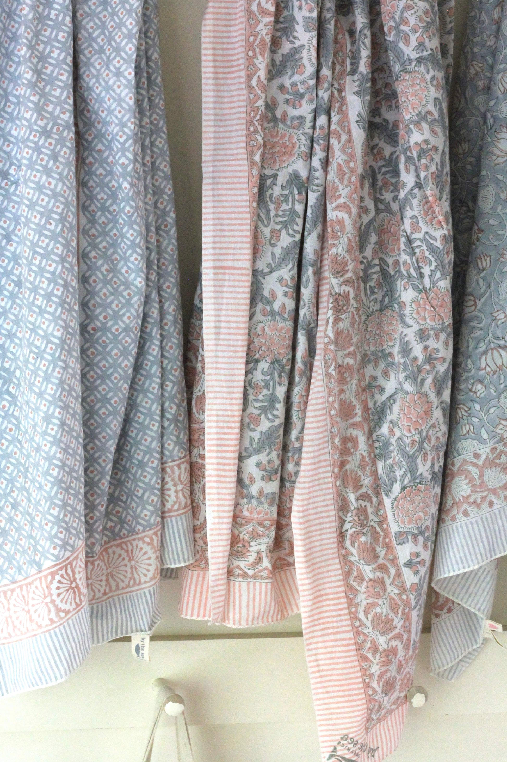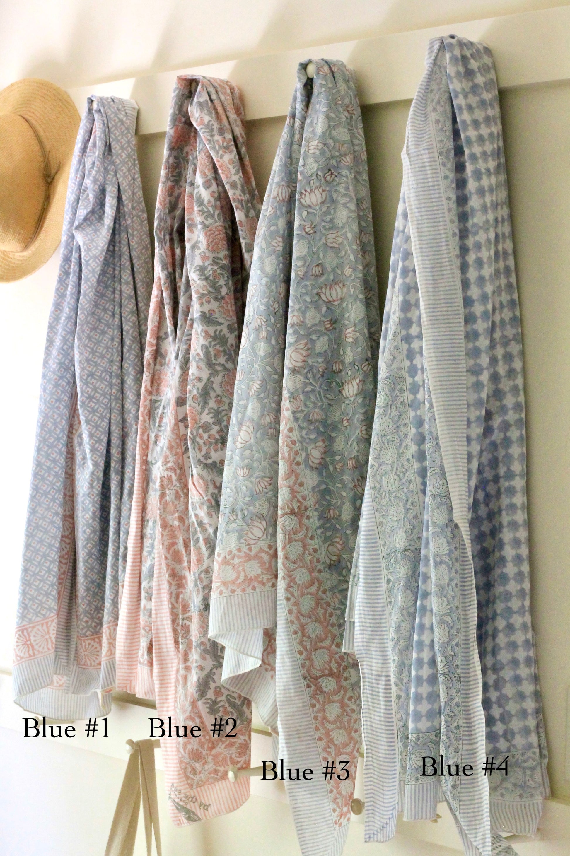 Simple, block print cotton wraps for swim coverups, wrapped around shoulders, or used as a tablecloth.