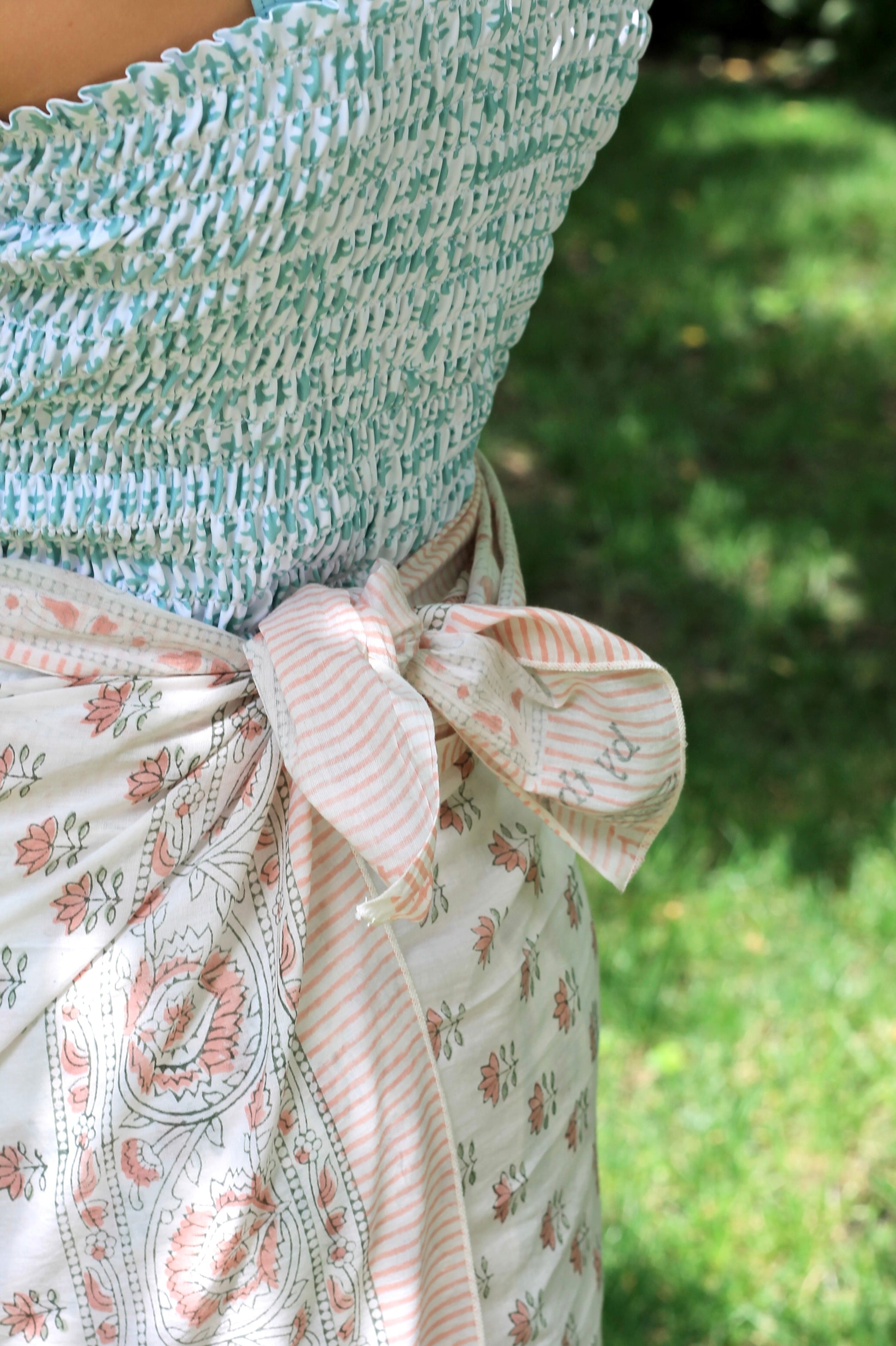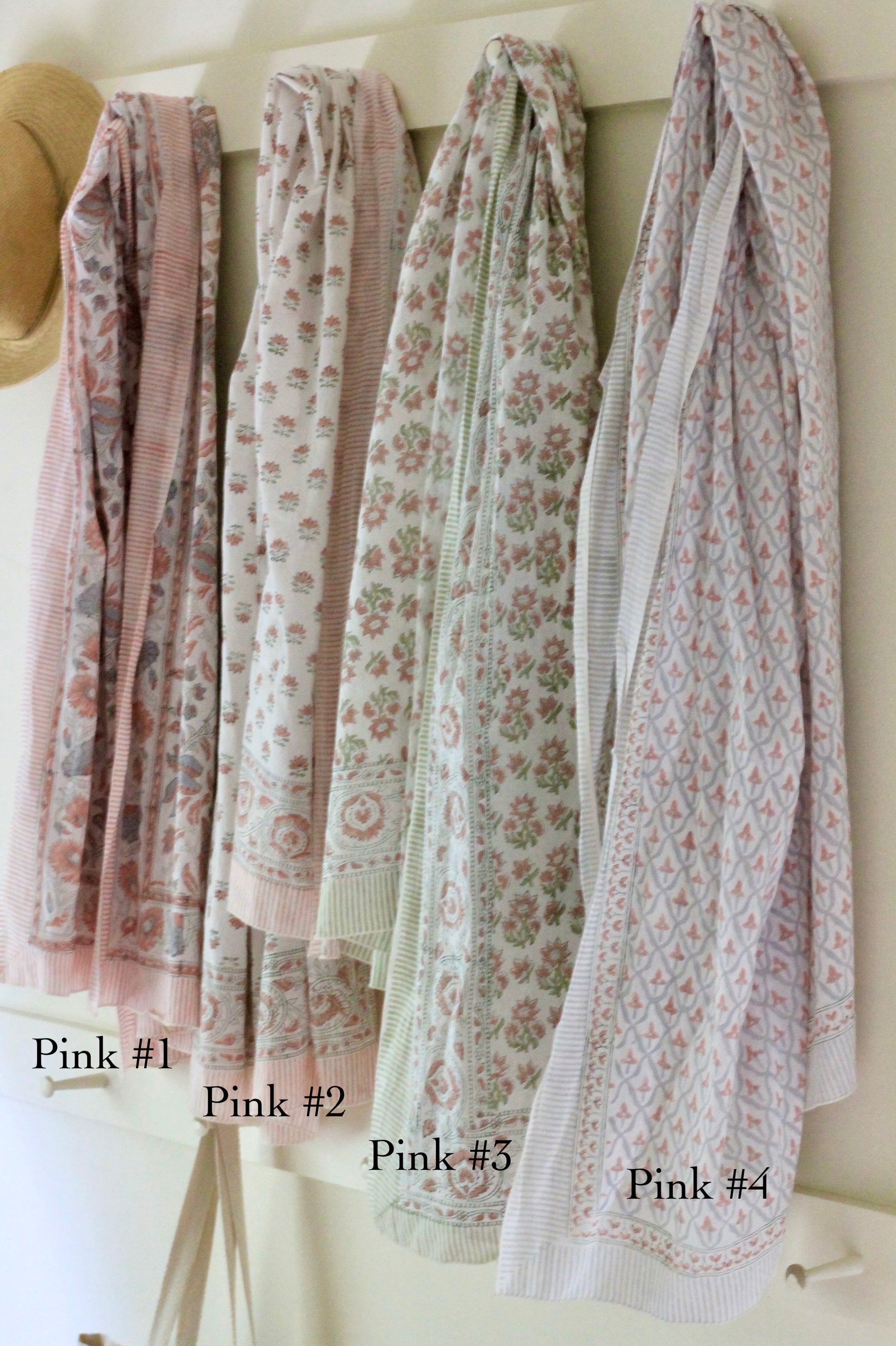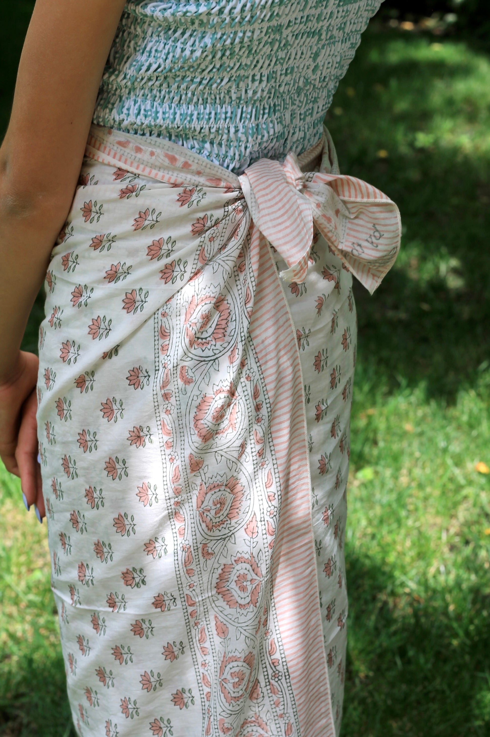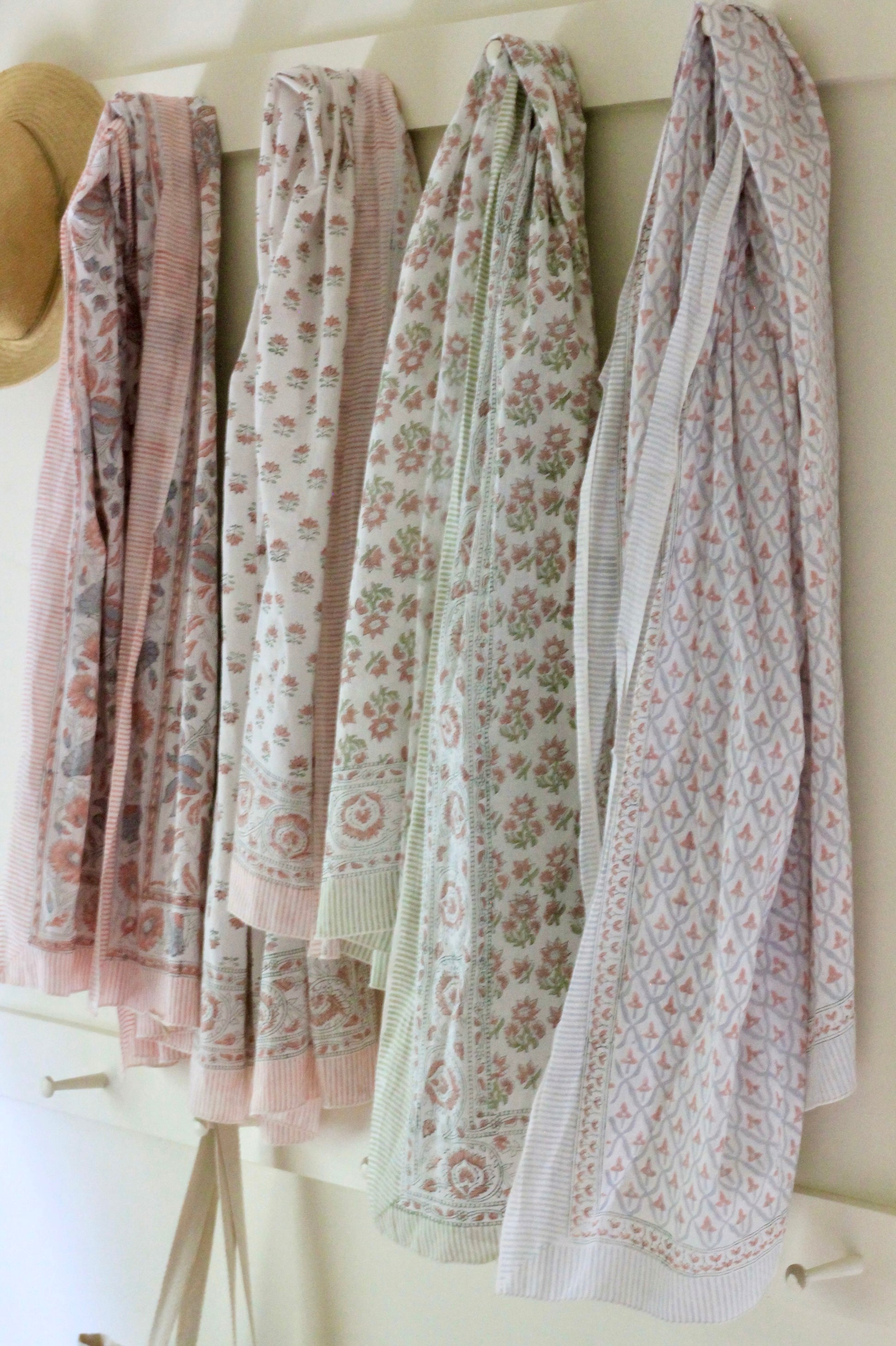 Simple, block print cotton wraps for swim coverups, wrapped around shoulders, or used as a tablecloth.