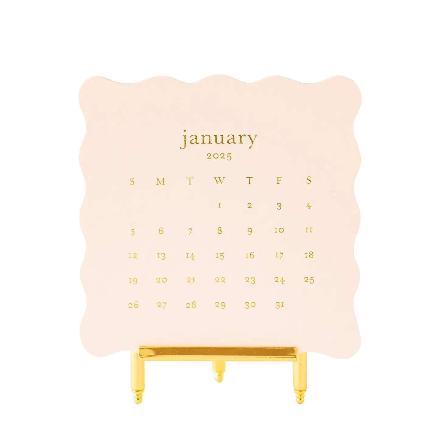 Gold Letterpress on heavy pink cardstock with brass easel.