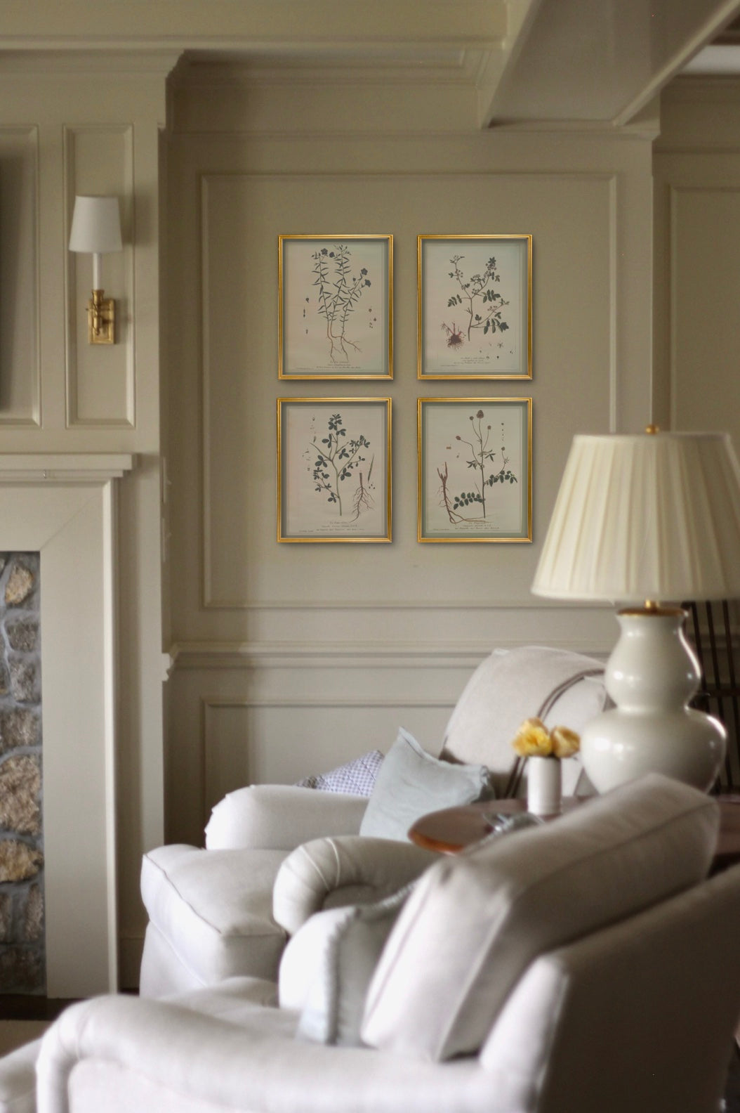 This set of French Botanicals is edged with a watery silver border and two thin chocolate lines that set them off in an antique way. They are perfect without a mat, since essentially the art contains its own mat. (We are also offering the 5x7 size with a robin's egg blue border option, here, which has a perfectly vintage feel.)