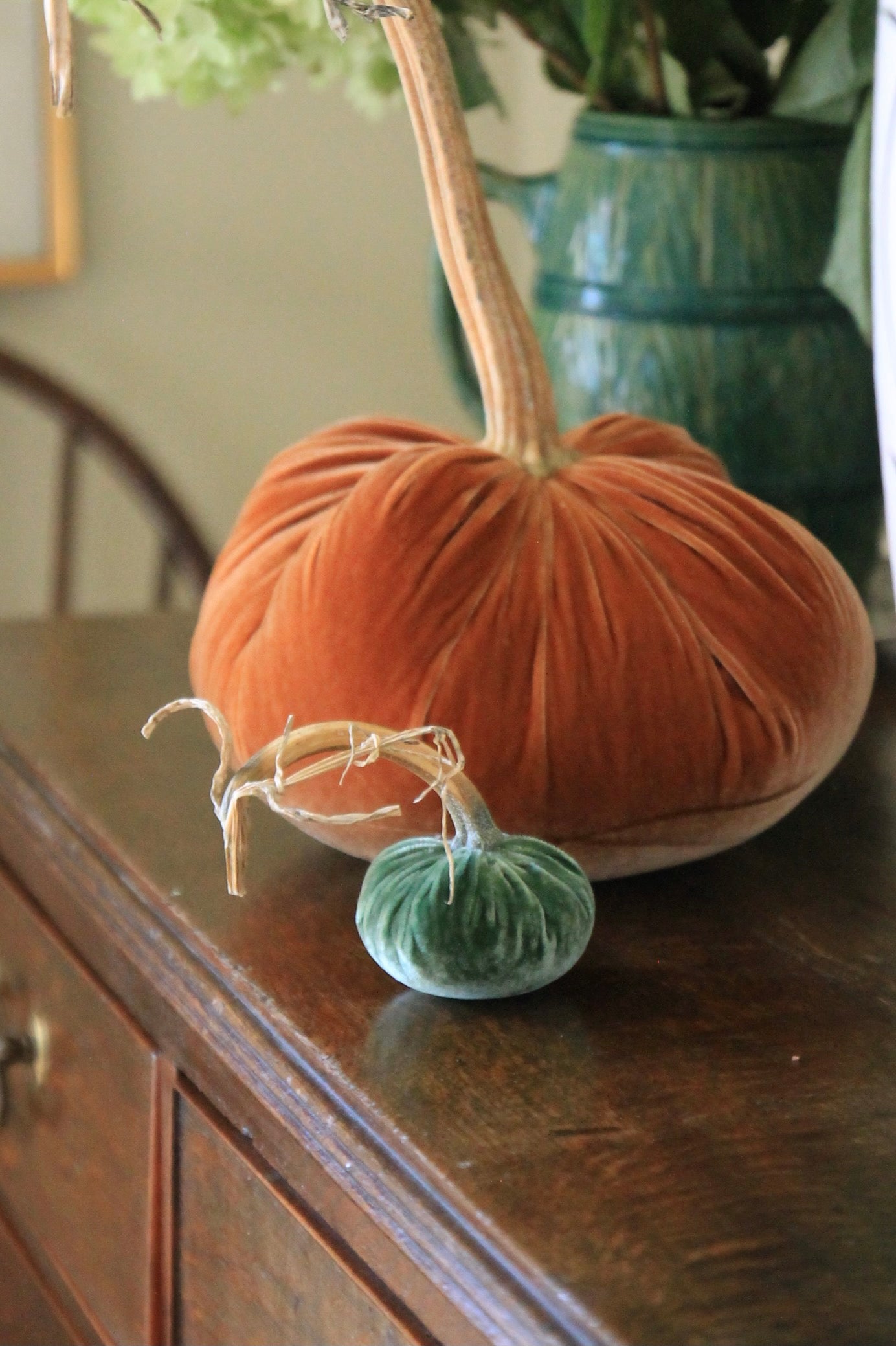 Handmade Velvet Pumpkins made in Oregon with real dried pumpkin stems.