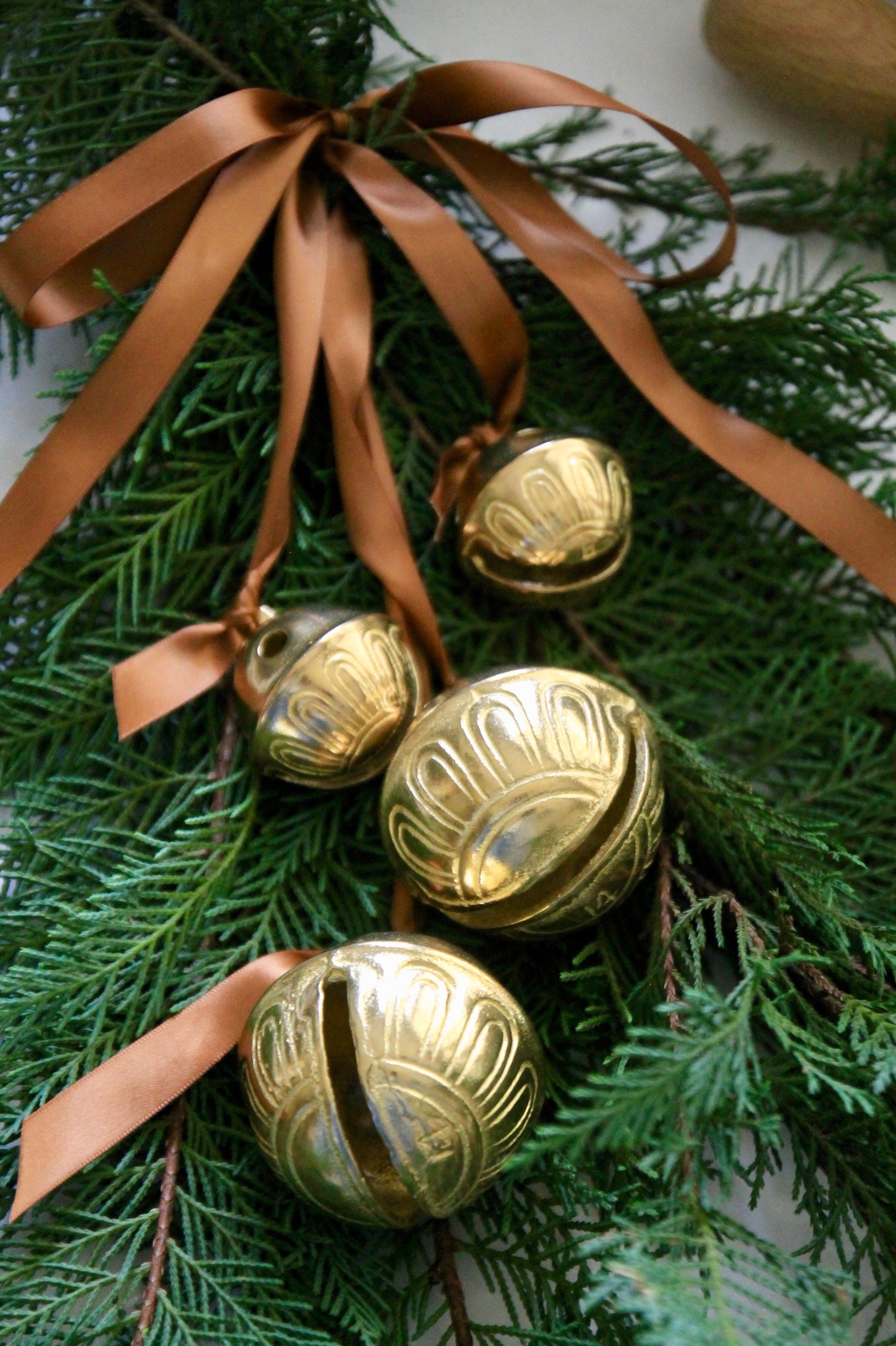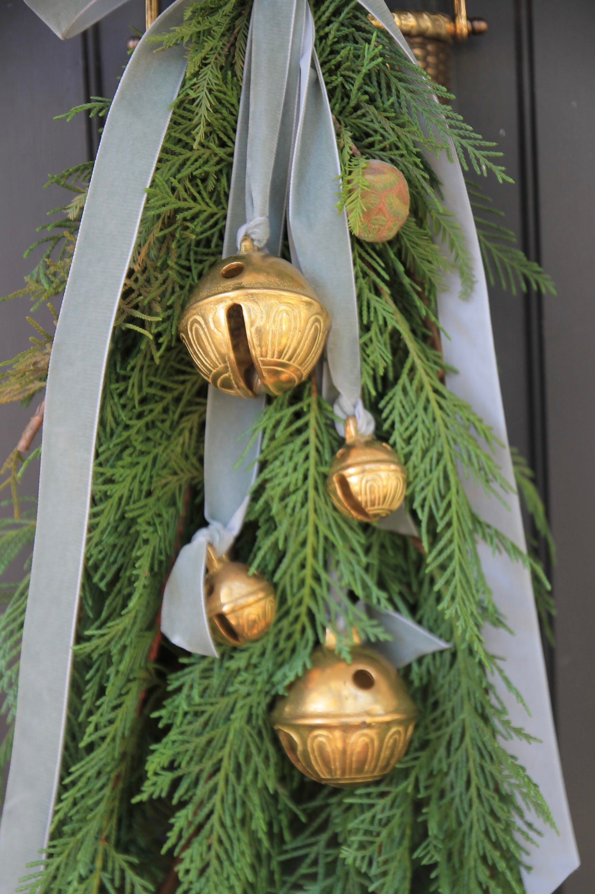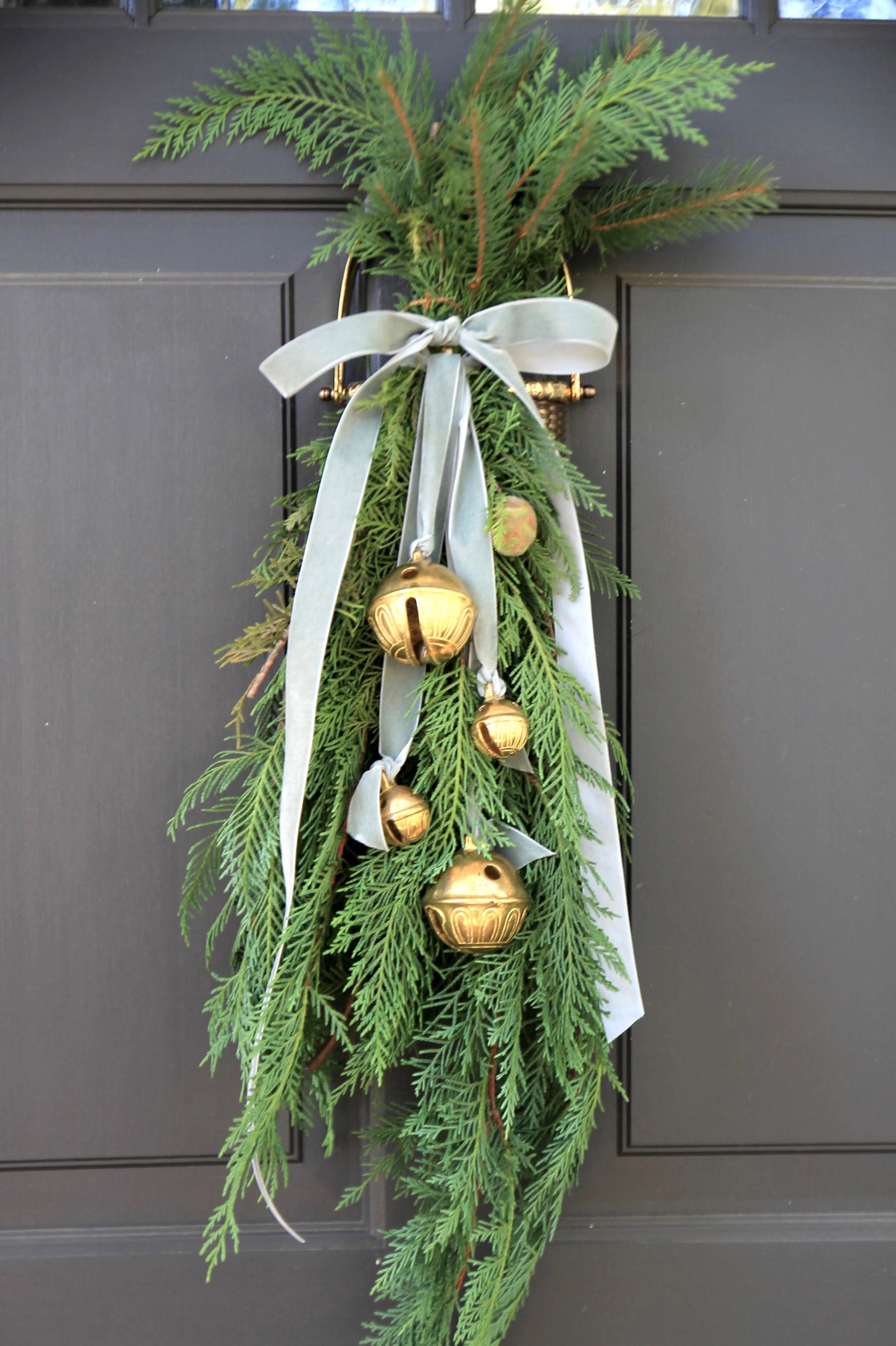* As a general rule, I tend to use 2 larger bells + 2 smaller bells on the door swag seen below. However, I have also used 4 of the same size, small or large. You really cannot go wrong with any combination!