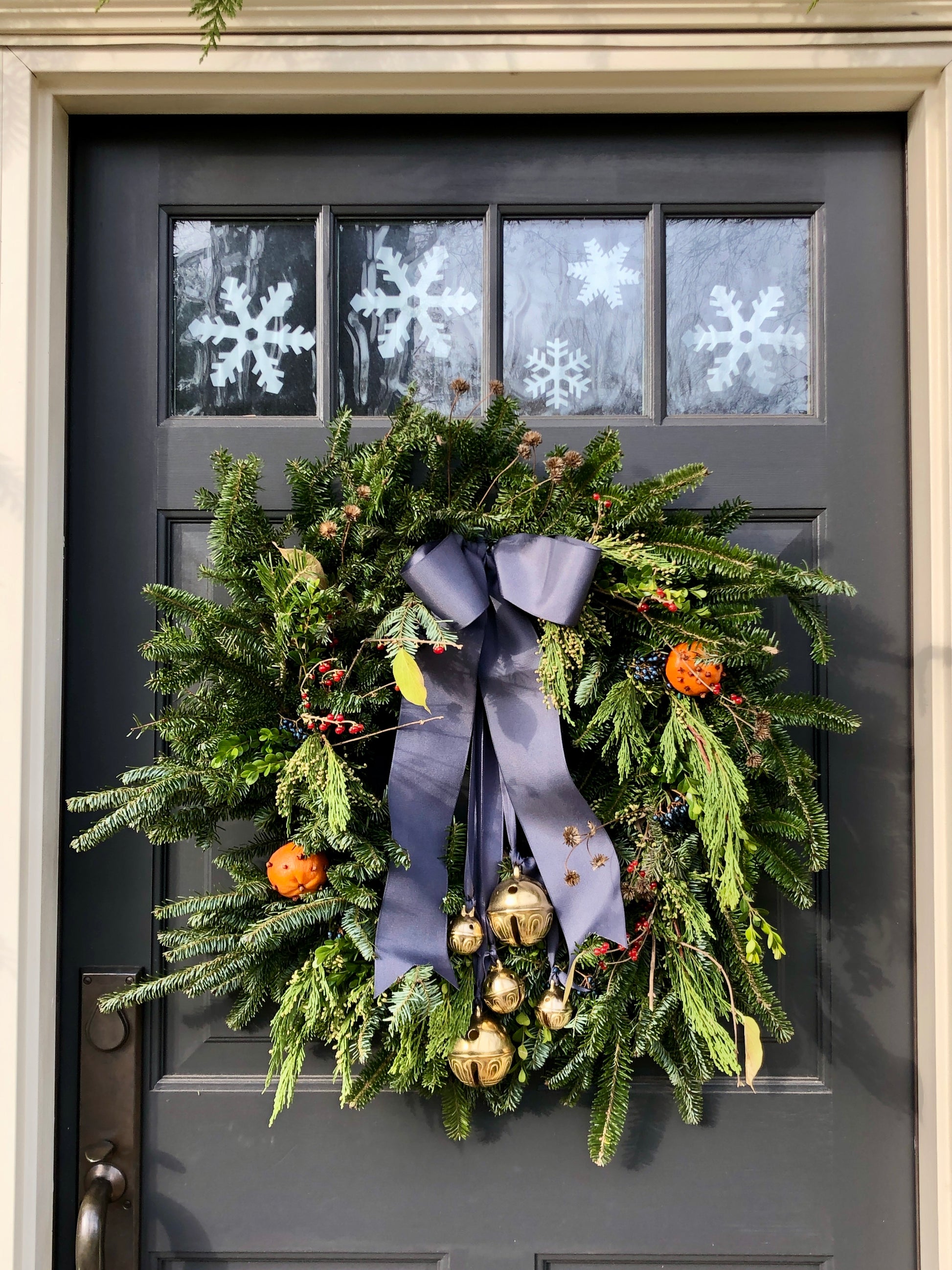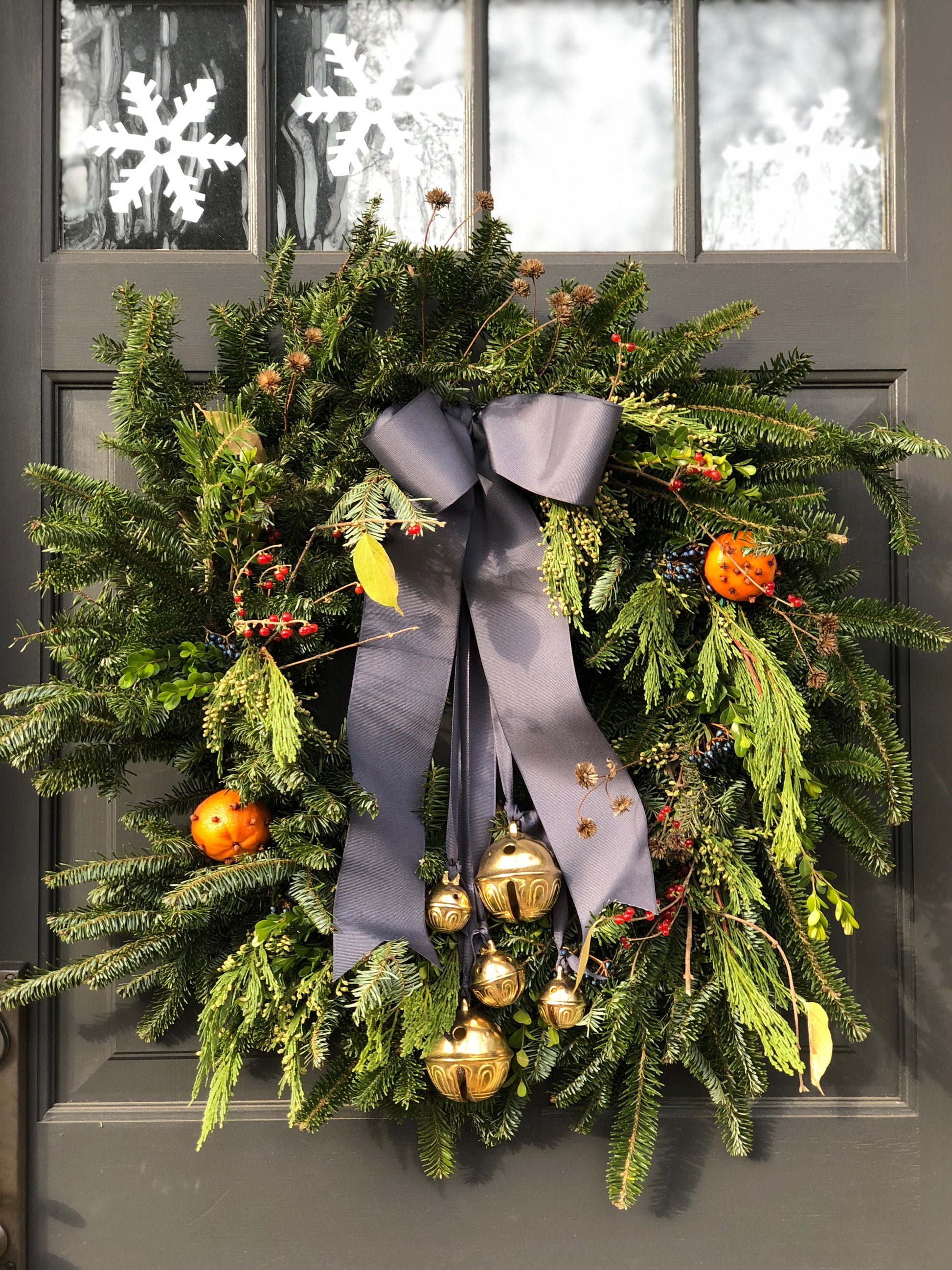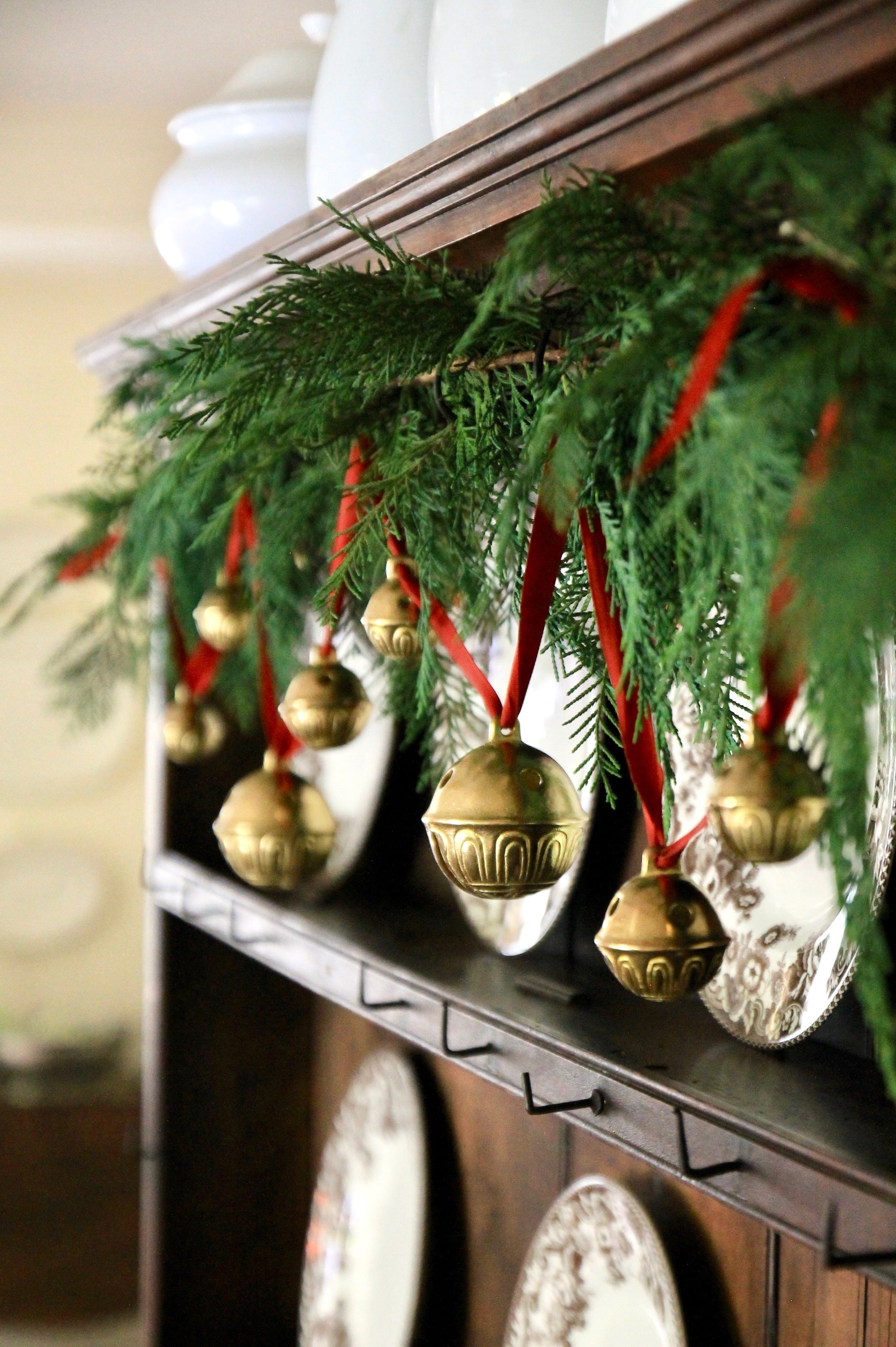 * As a general rule, I tend to use 2 larger bells + 2 smaller bells on the door swag seen below. However, I have also used 4 of the same size, small or large. You really cannot go wrong with any combination!