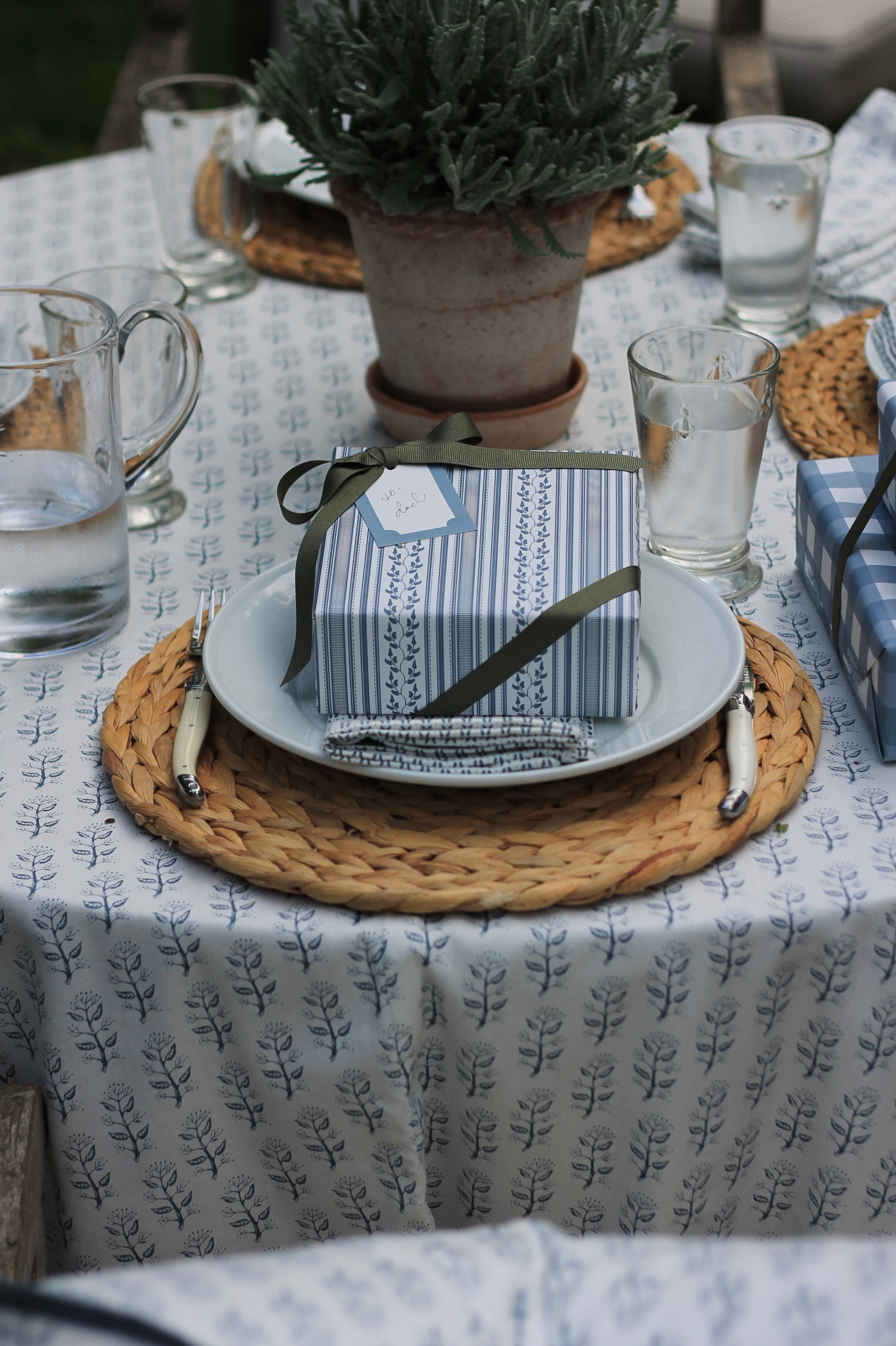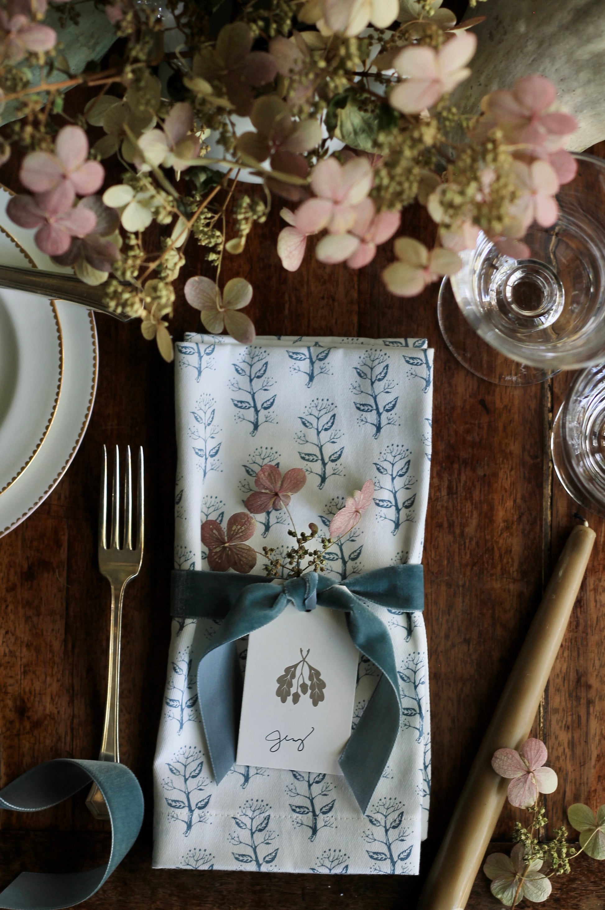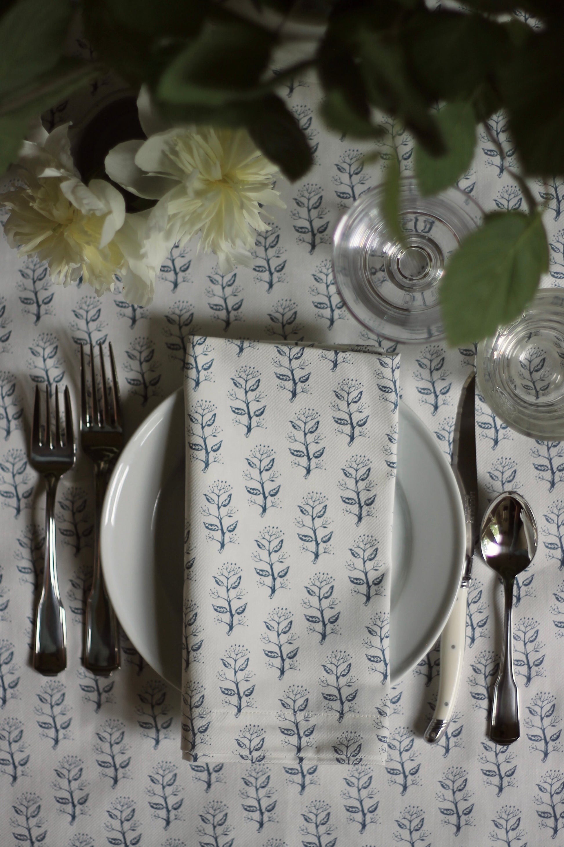 Privet Sprig in Navy Napkins & Table Linens